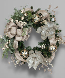 Add timeless sophistication to your door or mantel with this exquisite, handcrafted wreath from South Texas Flower Company. Designed with lush, lifelike pine greenery, it’s adorned with soft champagne and silver accents for a look that’s both classic and luxurious.